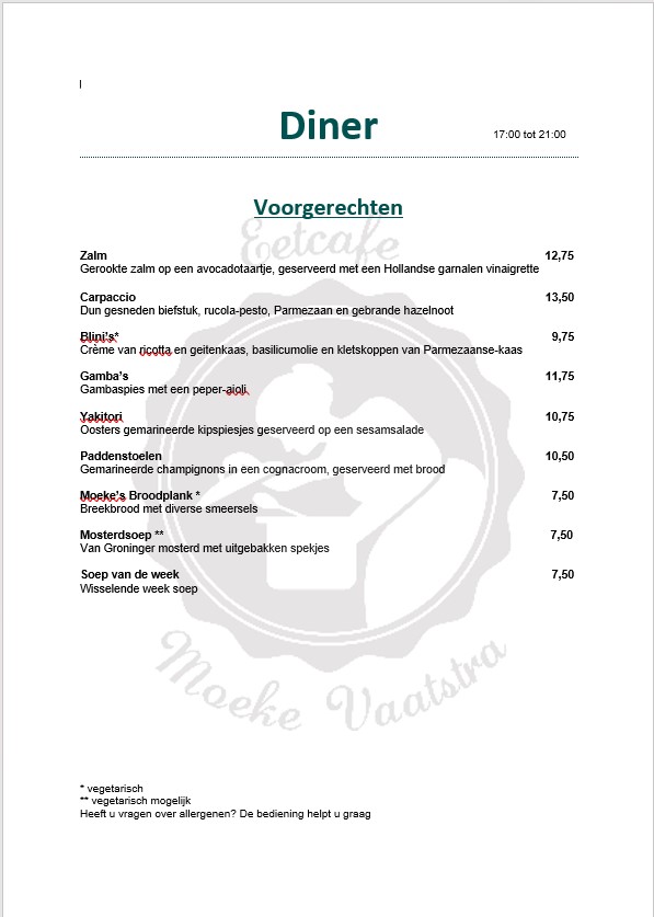 Menukaart